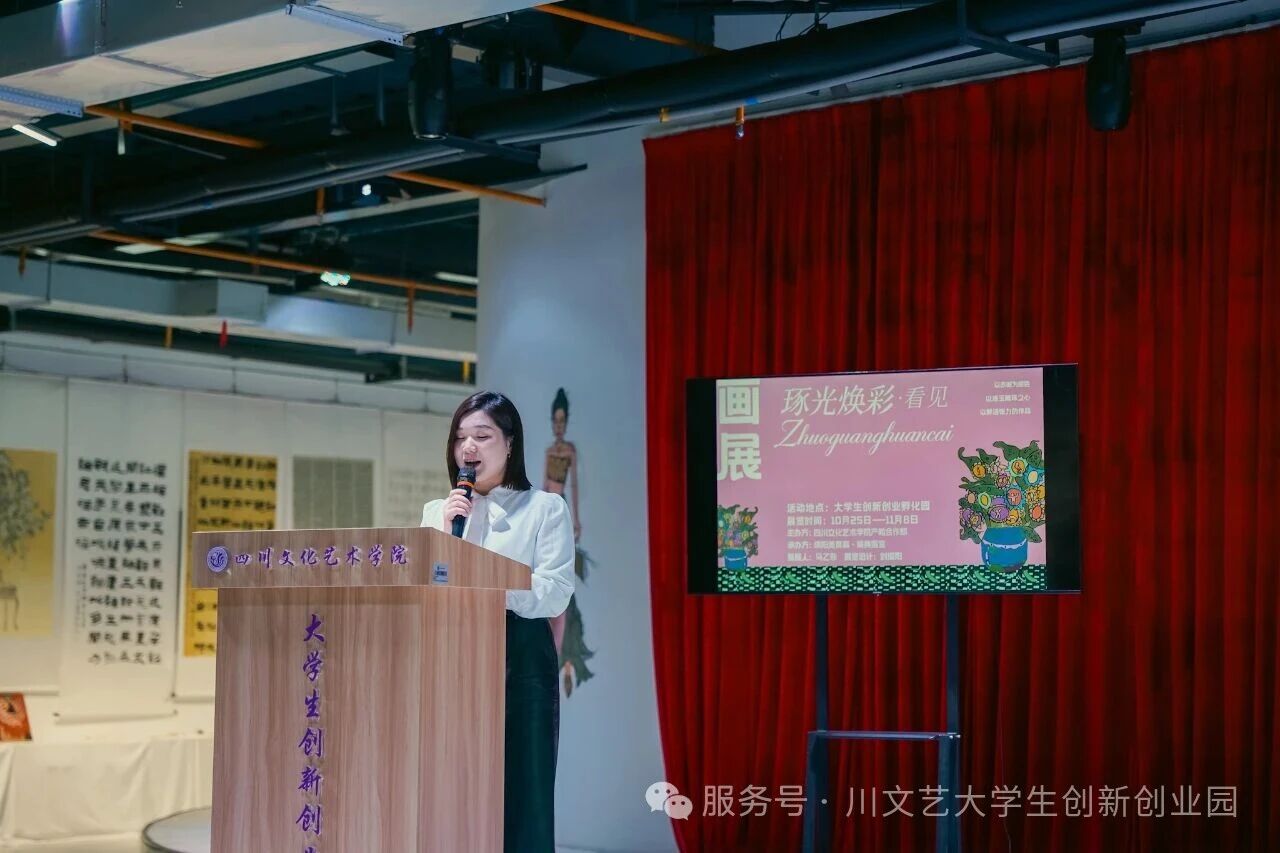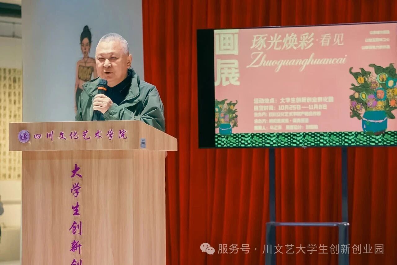 10月25日,以“焕彩逐光·看见”为主题的儿童绘画展在大学生创新创业园举办。本次艺术展由四川文化艺术学院产教合作部主办,绵阳美育高·曦典画室承办,美术学院绘画专业马乙菲同学策划并布展。美术学院院长孙文忠、副院长焦长虹、绘画专业负责人姜远良、美育高·曦典画室负责人梁佳出席开幕式。